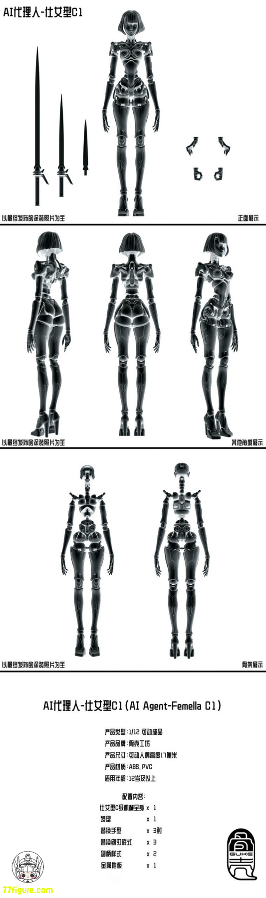 【先行販売】Guku Studio 1/12 AI エージェント Femella C3 無地版 塗装済み可動フィギュア